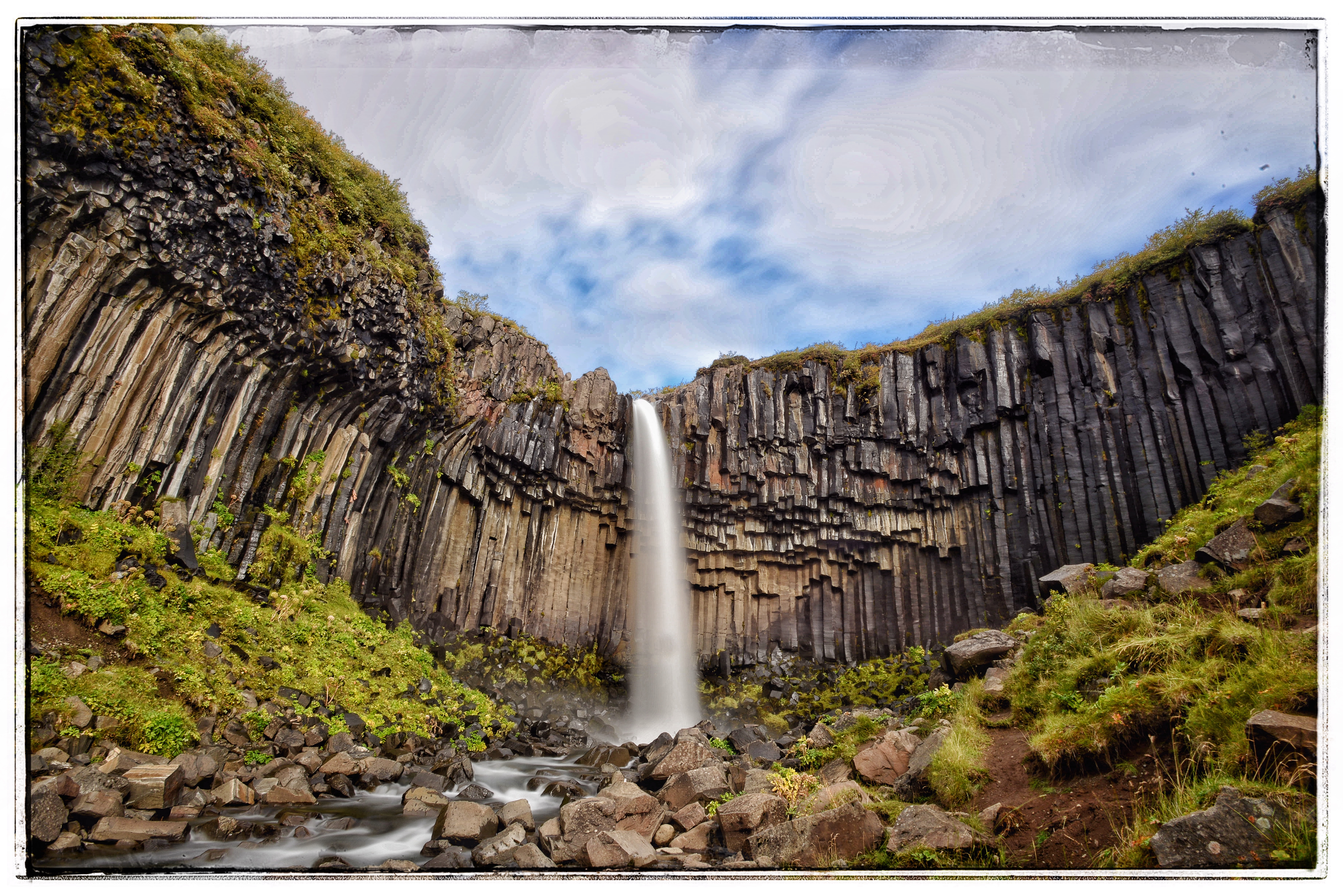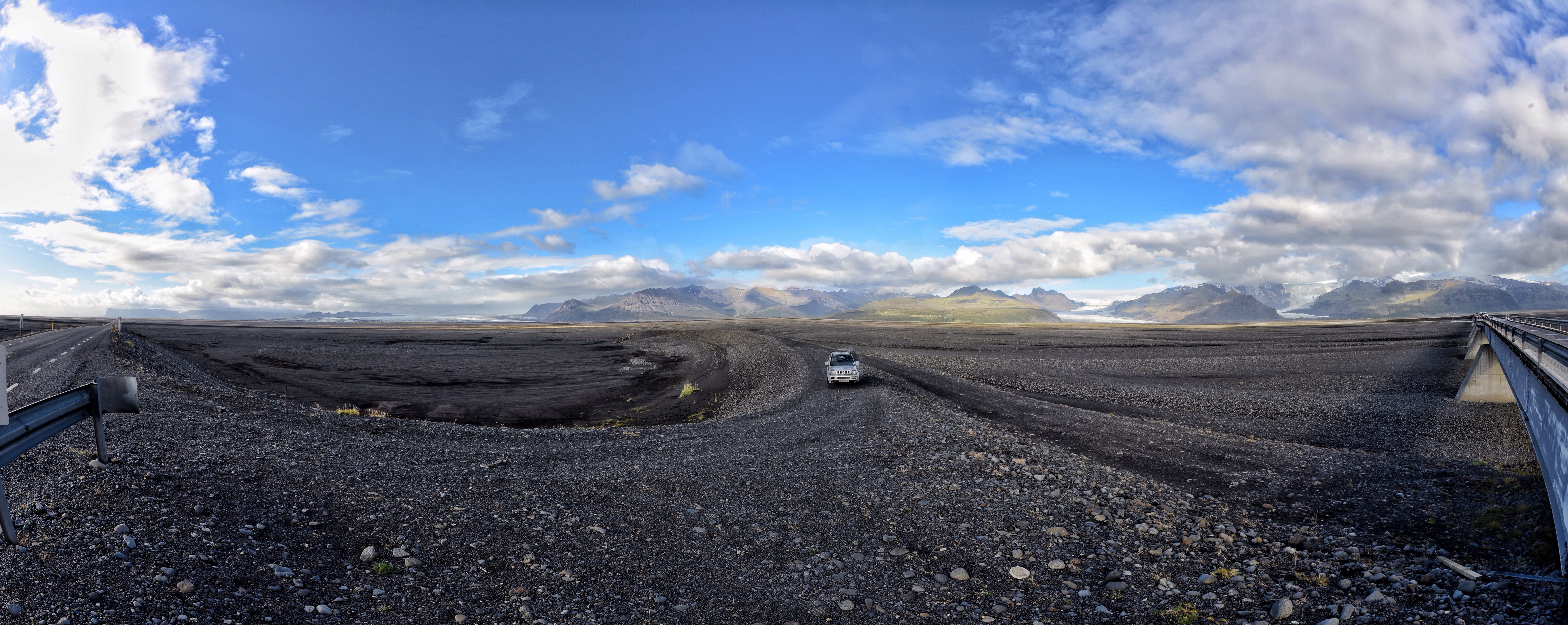 I had passed Skaftafell yesterday but due to the weather and lateness of the hour had not stopped. The approach to it from Jökullsarlon, and from it to Kirkjubæjarklauster, is across miles and miles of black sand left by retreating glaciers and seasonal floods. I learned today that this area, called Skeidarársandur, is more than 1000 km2. Thats enormous..! to cross all the sand and braided rivers was so dangerous and time-consuming that people uused to “detour” into the mountains and cross the glaciers instead. Treading about the engineering that went into the bridges that cross this ever-changing expanse was also interesting – they are, essentially, designed to fail in a manner of speaking, in the event of once in a century flooding since the expense of building something to withstand that was far too great.